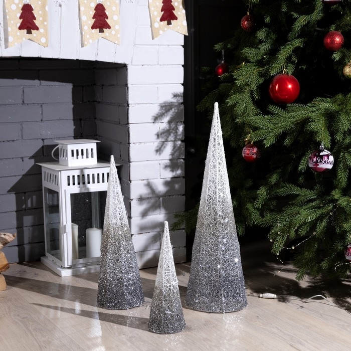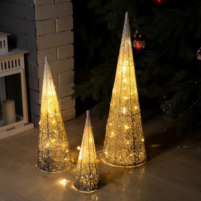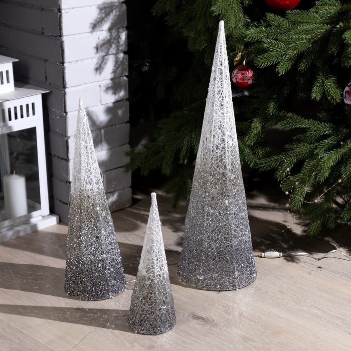 Светодиодная фигура «Серебристые конусы» 30, 45, 60 см, текстиль, металл, 220 В, свечение тёплое белое