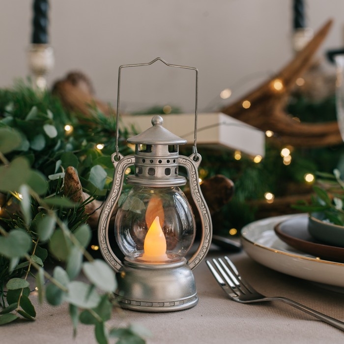 Светодиодная фигура «Серебристый фонарь» 8 × 12 × 6 см, пластик, батарейки AG13х3 (в комплекте), свечение тёплое белое