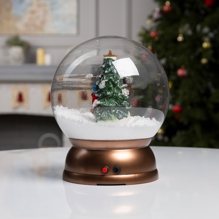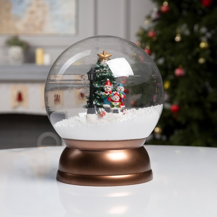 Светодиодная фигура «Шар со снеговиками и ёлкой» 21.5 × 26.5 × 21.5 см, пластик, батарейки ААх3 (не в комплекте), USB, свечение белое