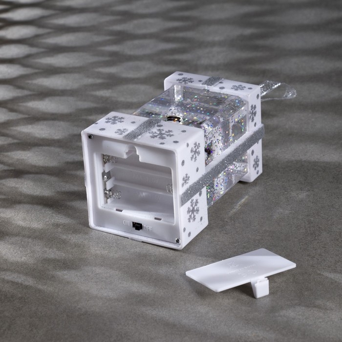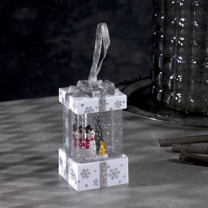 Светодиодная фигура «Снеговик в белом подарке» 6.3 × 11.5 × 6.3 см, пластик, блёстки, батарейки АААх3 (не в комплекте), свечение тёплое белое