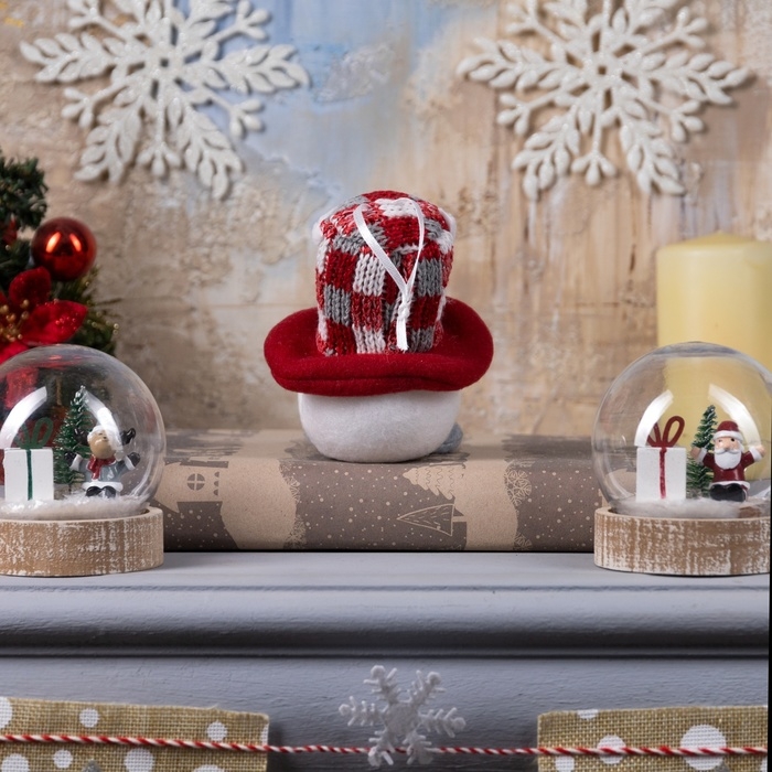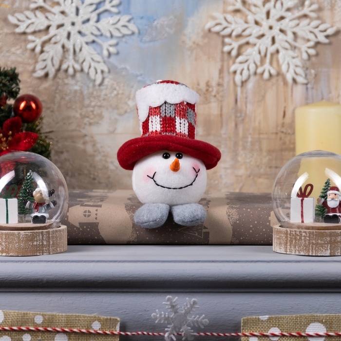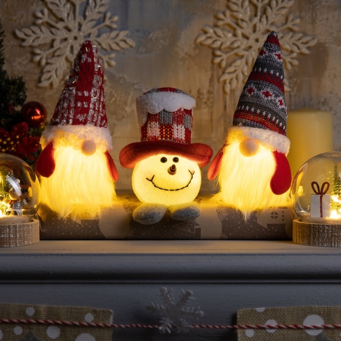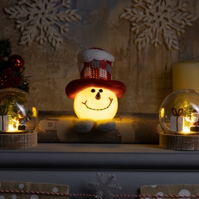 Светодиодная фигура «Снеговик в цилиндре» 6 × 11 × 6 см, текстиль, батарейки LR1130х3 (в комплекте), свечение тёплое белое