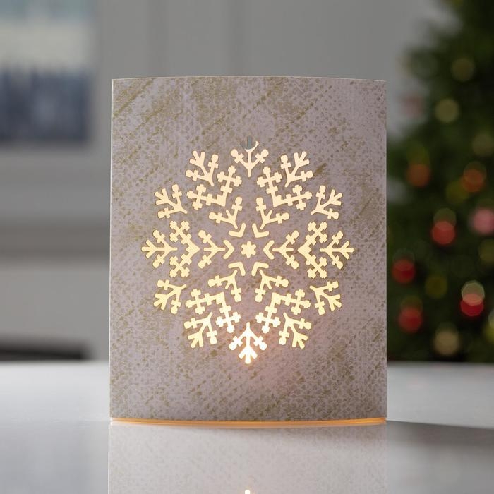 Светодиодная фигура «Снежинка» 13 × 16 × 5 см, картон, батарейка ААх2 (не в комплекте), свечение тёплое белое