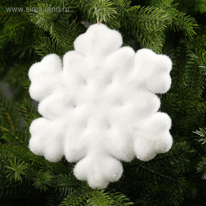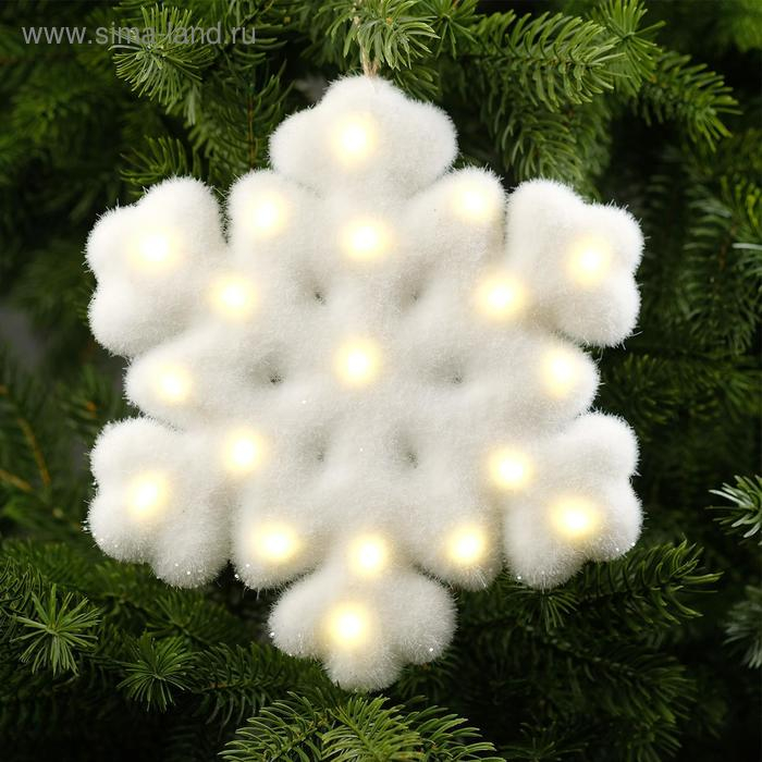 Светодиодная фигура «Снежинка» 20 см, флок, батарейки CR2032х2 (в комплекте), свечение тёплое белое