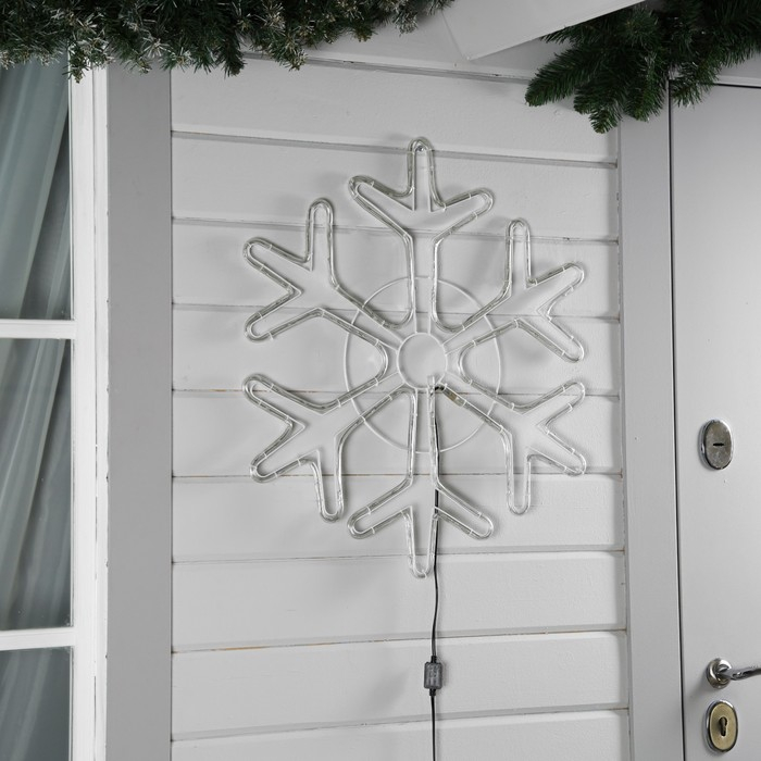 Светодиодная фигура «Снежинка», 69 см, дюралайт, 144 LED, 220 В, мерцание, свечение белый/синий