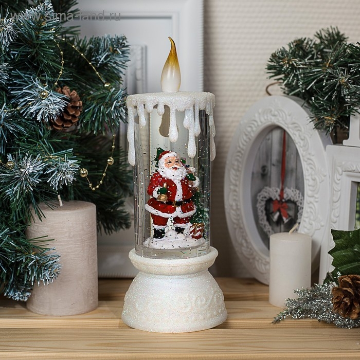Светодиодная фигура «Свеча с Дедом Морозом» 10 × 26 × 10 см, пластик, блёстки, батарейки ААх3 (не в комплекте), свечение RGB