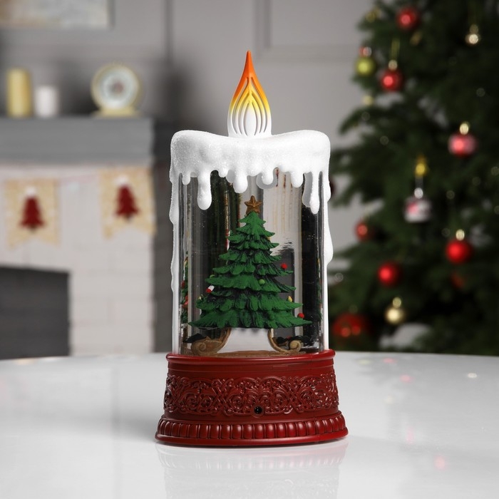 Светодиодная фигура «Свеча с ёлкой» 12.3 × 24 × 8 см, пластик, батарейки ААх3 (не в комплекте), USB, свечение тёплое белое