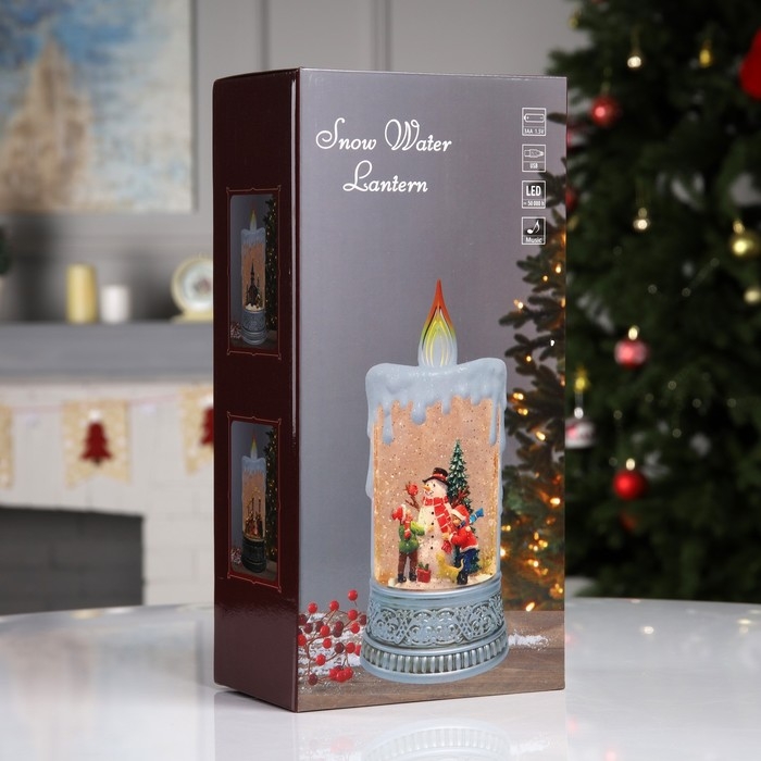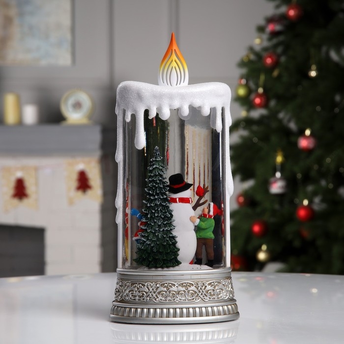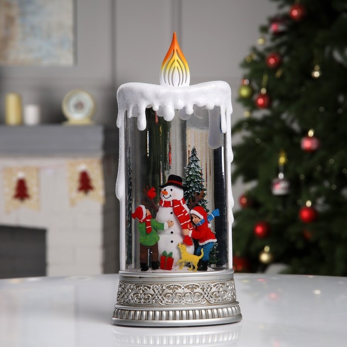 Светодиодная фигура «Свеча со снеговиком» 13.8 × 30 × 8.4 см, пластик, батарейки ААх3 (не в комплекте), USB, свечение тёплое белое