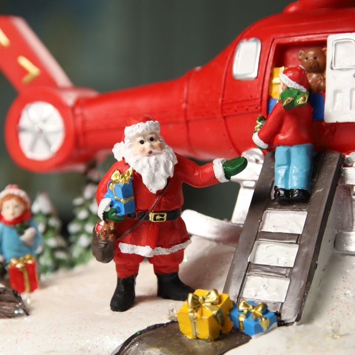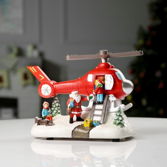 Светодиодная фигура «Вертолёт и Дед Мороз» 31.5 × 18 × 18 см, полистоун, батарейки ААх3 (не в комплекте), USB, свечение мульти