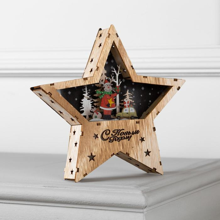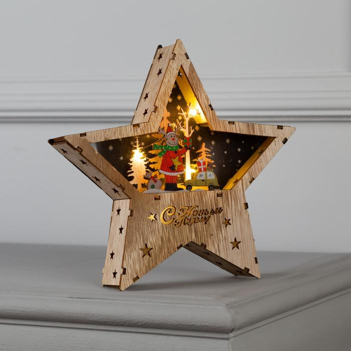 Светодиодная фигура «Звезда с новогодним оленем» 22 × 22 × 4 см, дерево, батарейки АААх2 (не в комплекте), свечение тёплое белое