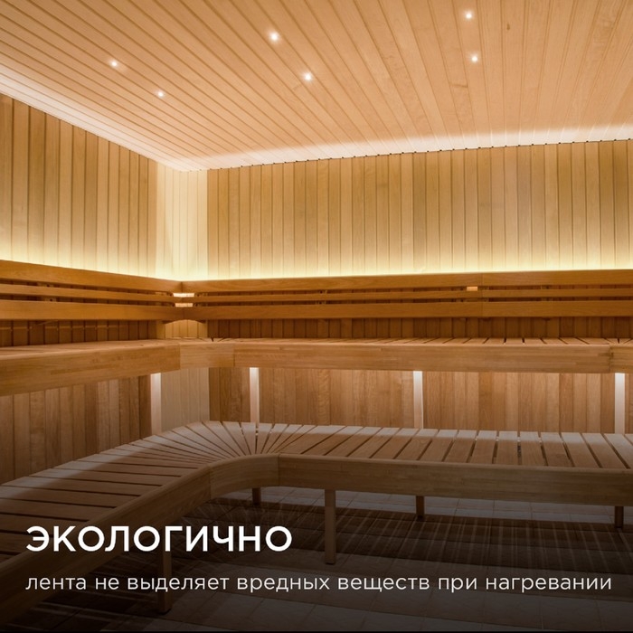 Светодиодная лента для бани и сауны с артикулом 00-323 работает от постоянного тока с напряжением 24В. Благодаря светодиодам smd 2835 излучающим световой поток равный 900 Лм/м лента используется для вспомогательной декоративной подсветки областей интерьерного пространства. Светодиодная лента эквивалентна лампам накаливания мощностью 90 Вт. Данная модель светодиодной ленты обладает теплым белым цветом свечения с цветовой температурой 3000 К. При выборе светодиодной ленты важно учитывать такой параметр, как потребляемая мощность, чтобы правильно подобрать блок питания. У данной модели этот показатель равен 14,4 Вт на один метр. Степень защиты этого изделия соответствует стандарту IP68. Она предназначена для установки в помещениях с повышенной концентрацией влажности и повышенной температурой. Герметичная силиконовая оболочка позволяет использовать светодиодную ленту в банях и саунах. Не использовать в воде! Отрезать светодиодную ленту можно в специально отмеченных местах, которые располагаются через каждые 50 мм. В комплект поставки входит: светодиодная лента 5 м, крепеж 10 шт., заглушки 2 шт. в сборе +1 шт. При необходимости дополнительный комплект крепежей, комплект заглушек и шнур питания приобретается отдельно.