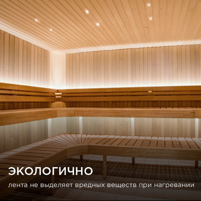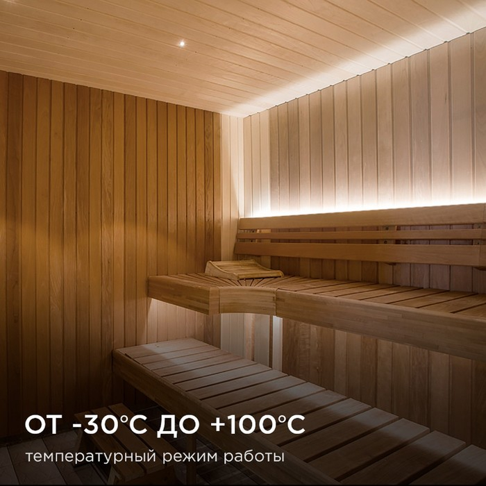 Светодиодная лента для бани и сауны с артикулом 00-324 работает от постоянного тока с напряжением 24В. Благодаря светодиодам smd 2835 излучающим световой поток равный 900 Лм/м лента используется для вспомогательной декоративной подсветки областей интерьерного пространства. Светодиодная лента эквивалентна лампам накаливания мощностью 90 Вт. Данная модель светодиодной ленты обладает дневным белым цветом свечения с цветовой температурой 4000 К. При выборе светодиодной ленты важно учитывать такой параметр, как потребляемая мощность, чтобы правильно подобрать блок питания. У данной модели этот показатель равен 14,4 Вт на один метр. Степень защиты этого изделия соответствует стандарту IP68. Она предназначена для установки в помещениях с повышенной концентрацией влажности и повышенной температурой. Герметичная силиконовая оболочка позволяет использовать светодиодную ленту в банях и саунах. Не использовать в воде! Отрезать светодиодную ленту можно в специально отмеченных местах, которые располагаются через каждые 50 мм. В комплект поставки входит: светодиодная лента 5 м, крепеж 10 шт., заглушки 2 шт. в сборе +1 шт. При необходимости дополнительный комплект крепежей, комплект заглушек и шнур питания приобретается отдельно.