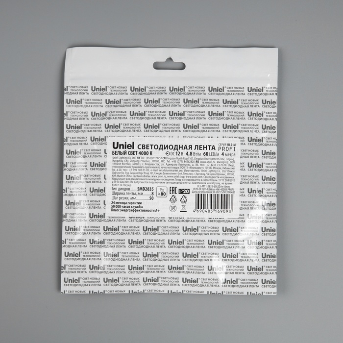 Светодиодная лента Uniel PRO 12В, SMD2835, 4 м, IP20, 4.8Вт/м, 60 LED/м, 4000K