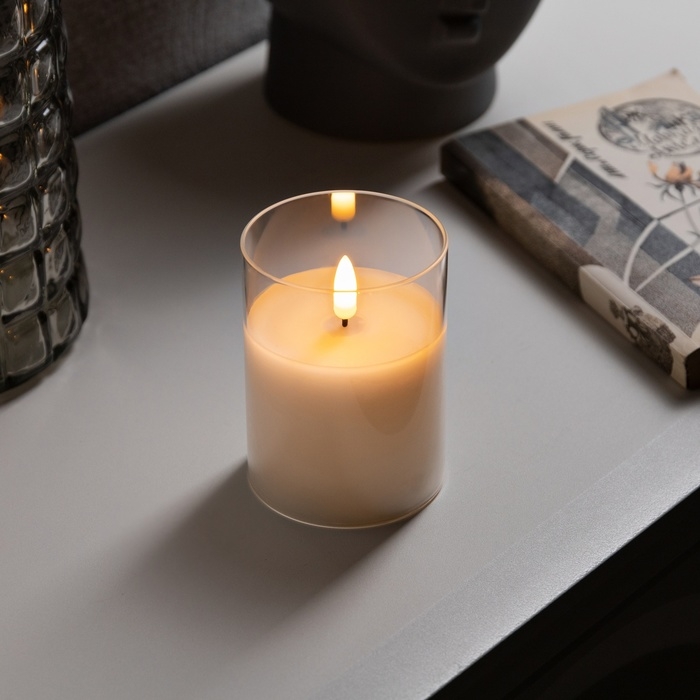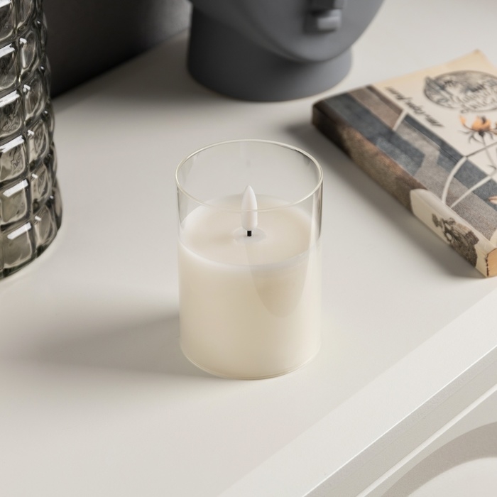 Светодиодная свеча белая, 7.5 × 10 × 7.5 см, воск, пластик, батарейки АААх3 (не в комплекте), свечение тёплое белое