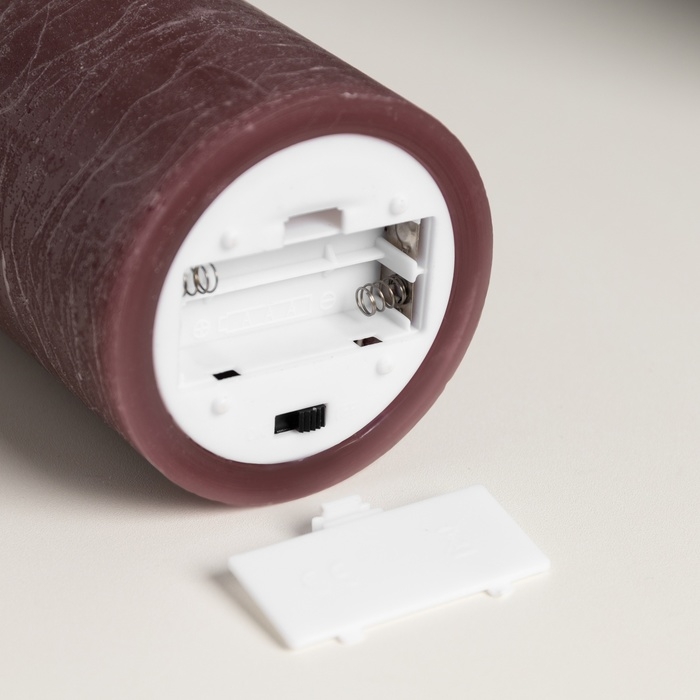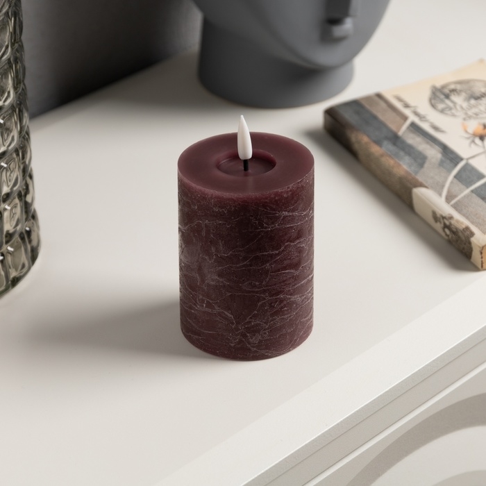Светодиодная свеча бордовая, 7.5 × 12.5 × 7.5 см, воск, пластик, батарейки АААх2 (не в комплекте), свечение тёплое белое
