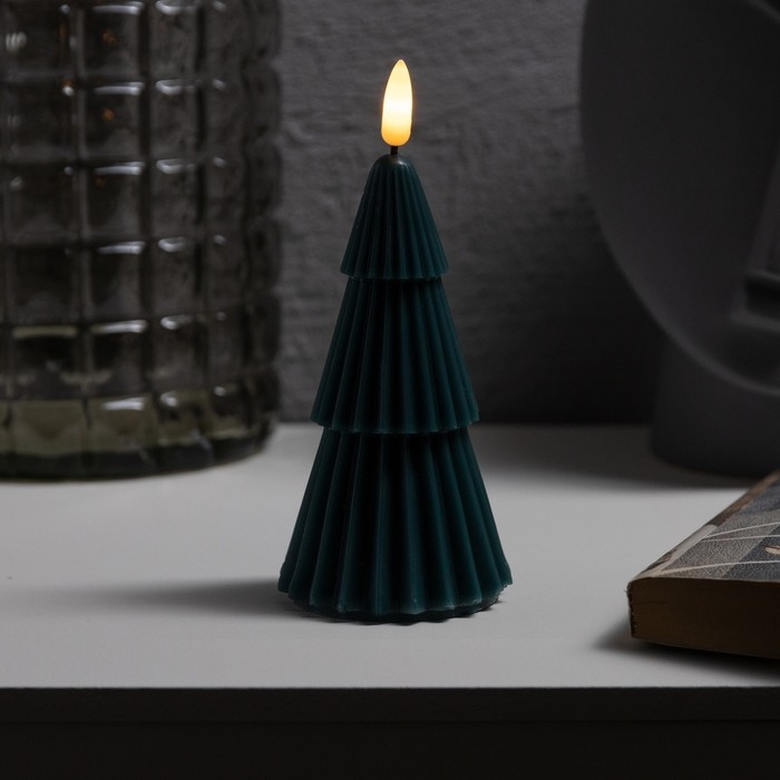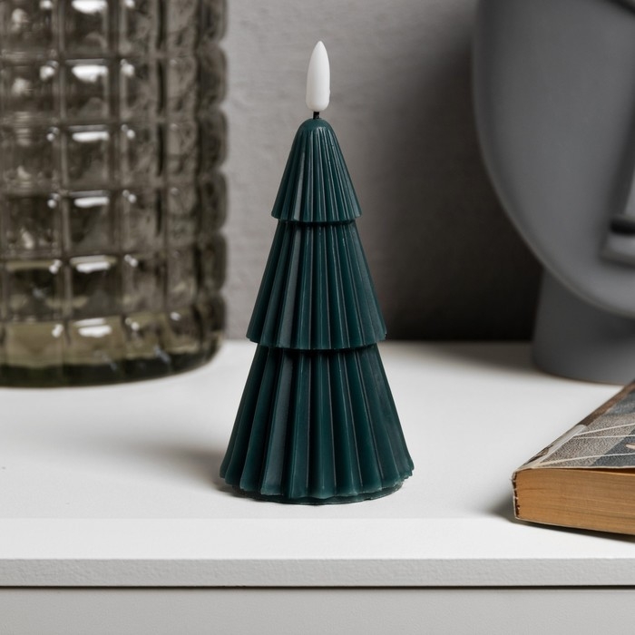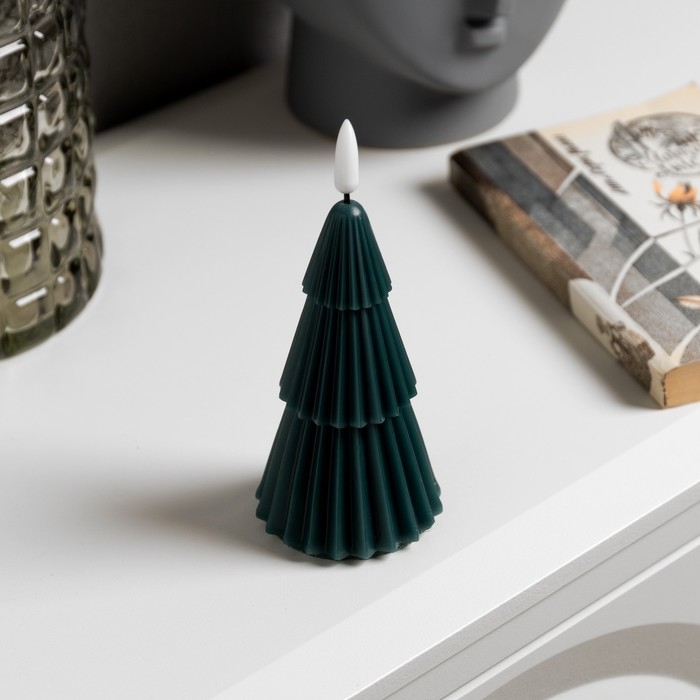 Светодиодная свеча «Ёлка зелёная» 7 × 15.5 × 7 см, воск, батарейка CR2032 (в комплекте), свечение тёплое белое