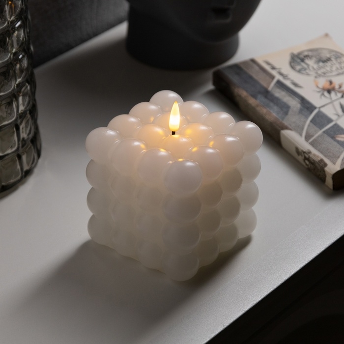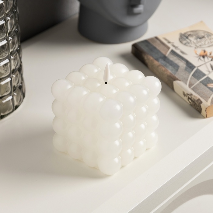 Светодиодная свеча «Куб белый», 10 × 11.5 × 10 см, воск, пластик, батарейки АААх3 (не в комплекте), свечение тёплое белое