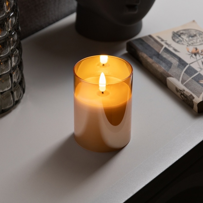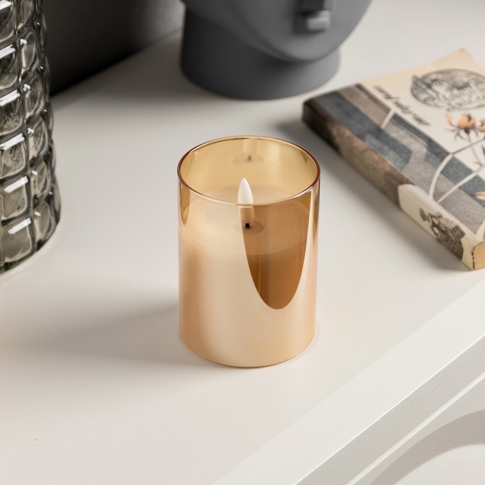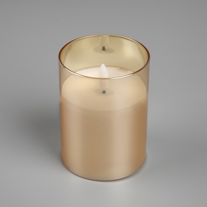 Светодиодная свеча золотистая, 7.5 × 10 × 7.5 см, воск, пластик, батарейки АААх3 (не в комплекте), свечение тёплое белое