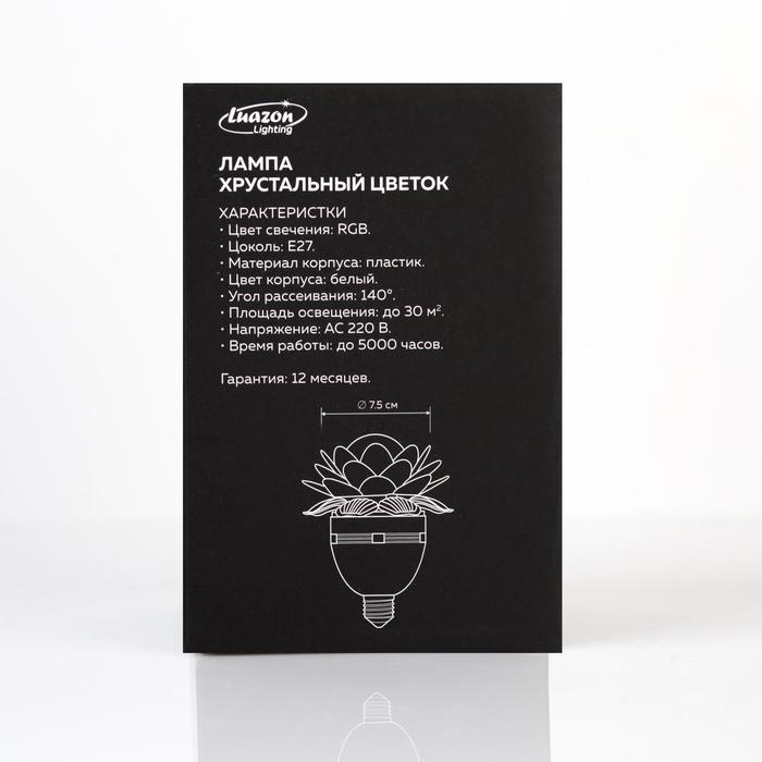 Световой прибор «Хрустальный цветок» 7.5 см, Е27, свечение RGB