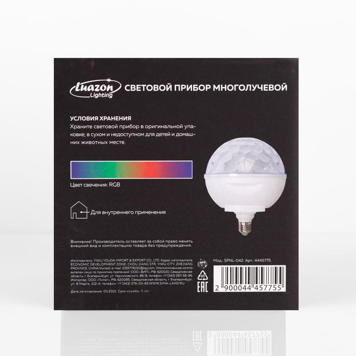 Световой прибор «Диско-шар» 8.5 см, Е27, свечение RGB