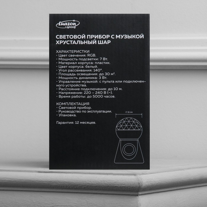 Световой прибор «Шар на подставке» 10 см, динамик, свечение RGB, 220 В