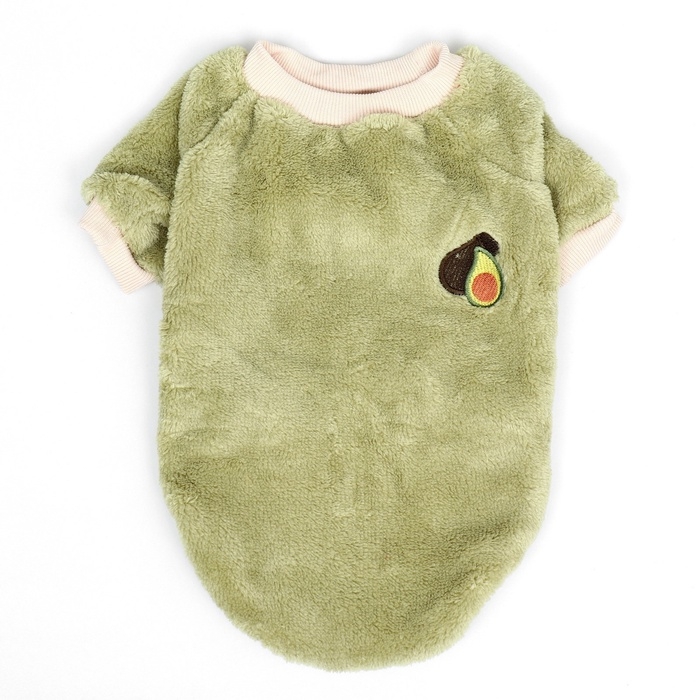 Свитер для животных из велюра в зелёном цвете с уникальным значком авокадо - это уютный и стильный наряд для вашего пушистого спутника. Свитер изготовлен из мягкого и теплого велюра, он обеспечивает комфорт и тепло, его можно носить как в прохладную погоду на прогулку, так и дома.