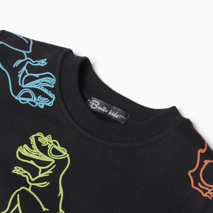 Свитшот для мальчика, цвет черный/дино, рост 104 см