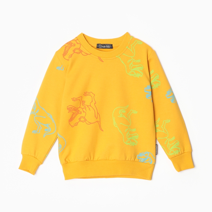 Свитшот для мальчика, цвет тёмно-жёлтый/дино, рост 110 см