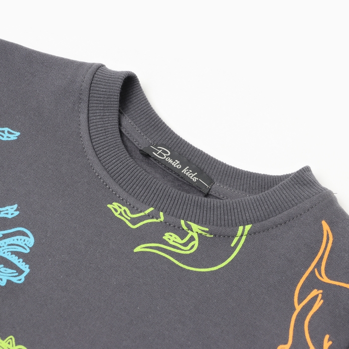 Свитшот для мальчиков, цвет графит/дино, рост 110