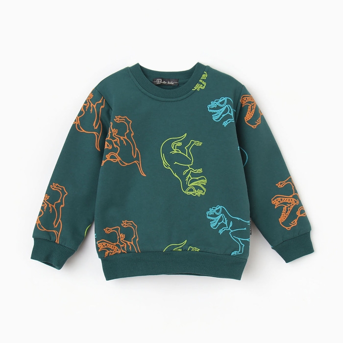 Свитшот для мальчиков, цвет изумрудный/дино, рост 98 см