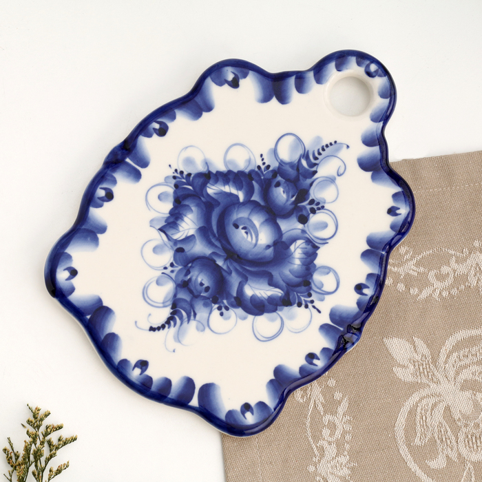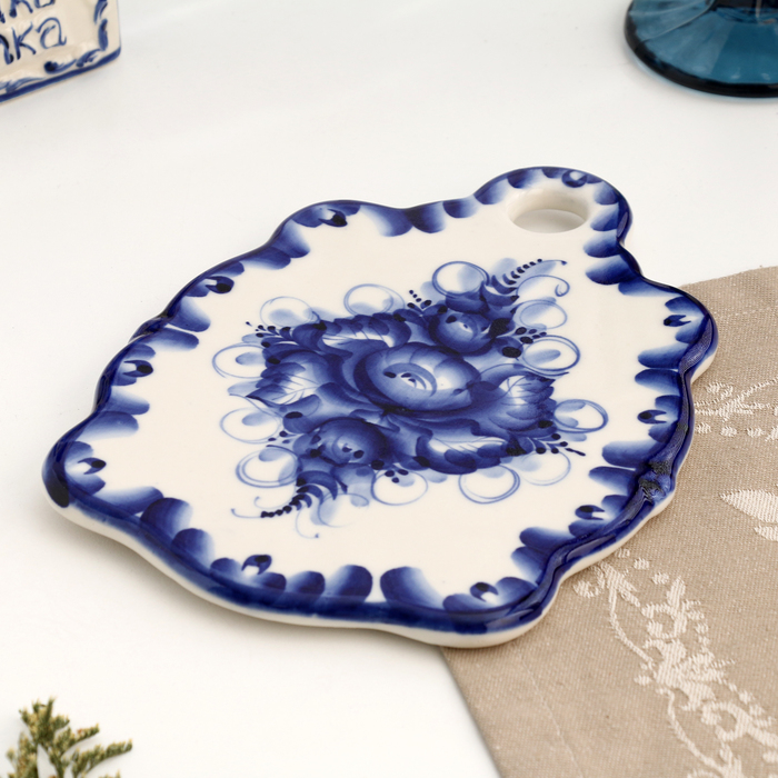 Сырная доска малая, гжель, фарфор, 21х15 см