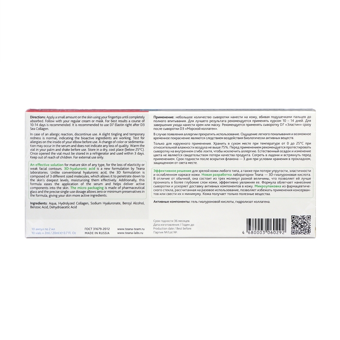 Сыворотка для лица TEANA морской коллаген, 20 мл