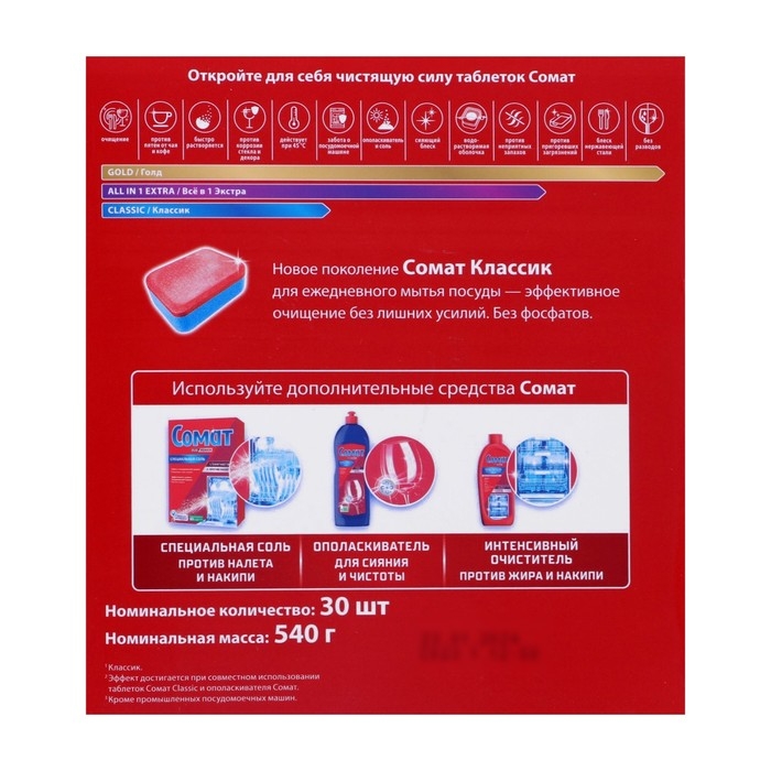Таблетки для посудомоечной машины Сомат Classic, 30 шт
