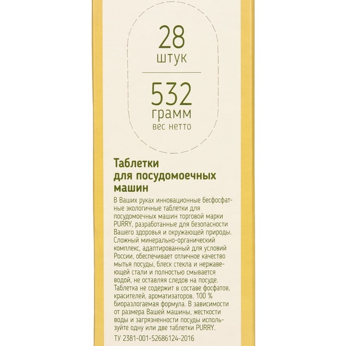 Таблетки для посудомоечных машин Purry Nature, с натуральной горчицей, 28 шт