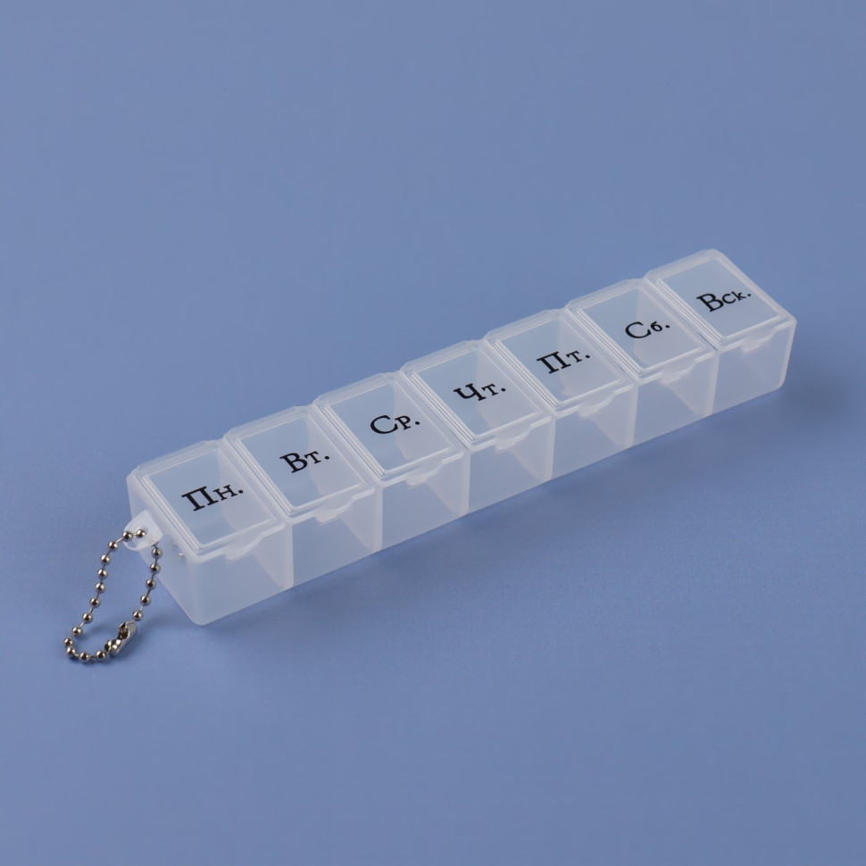 Теперь вы не забудете принять витамины или таблетки в течение дня: удобная и функциональная таблетница поможет распределить приём нужных препаратов по дням недели и вовремя вспомнить о них.
