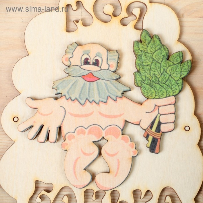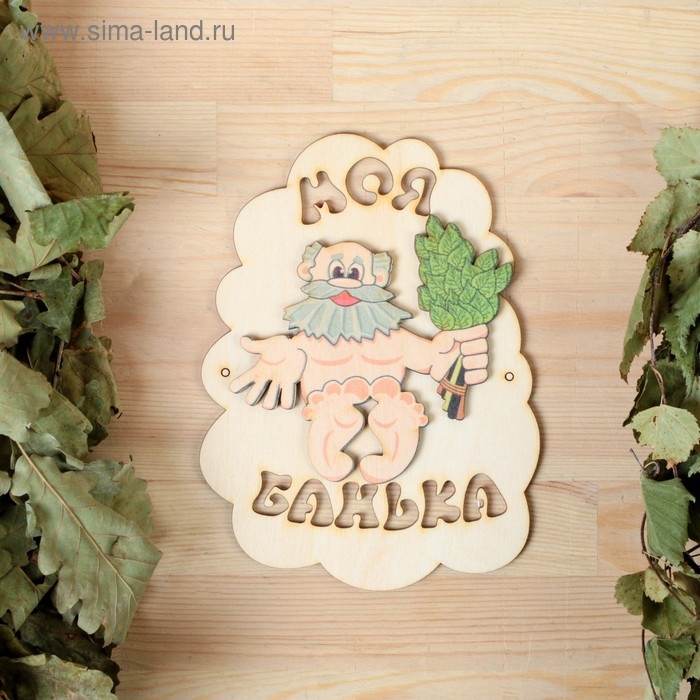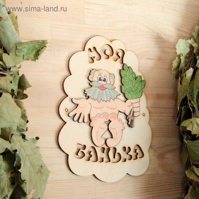 Табличка для бани "Моя банька", дед с веником, 17.5х13см
