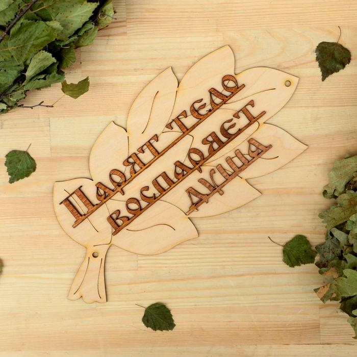 Табличка для бани "Парят тело - воспаряет душа" в виде веника 30х17см
