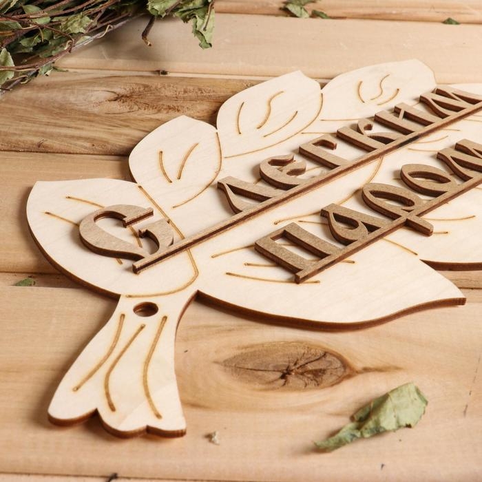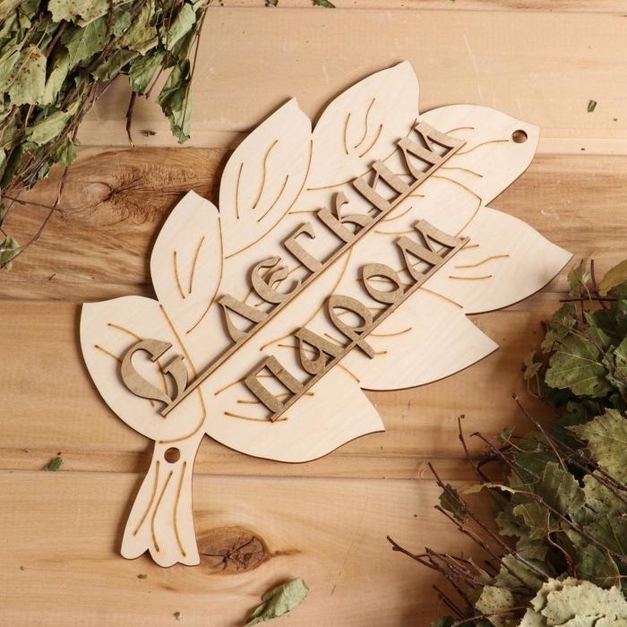 Табличка для бани "С легким паром!" в виде веника 30х17см