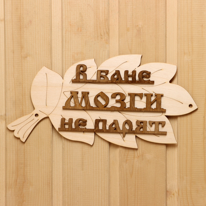 Табличка для бани "В бане мозги не парят" в виде веника 30х17см