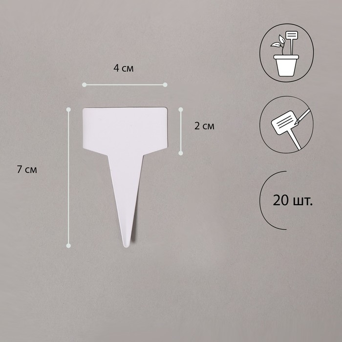 Таблички садовые для маркировки, 7 см, набор 20 шт., пластик, белые, Greengo