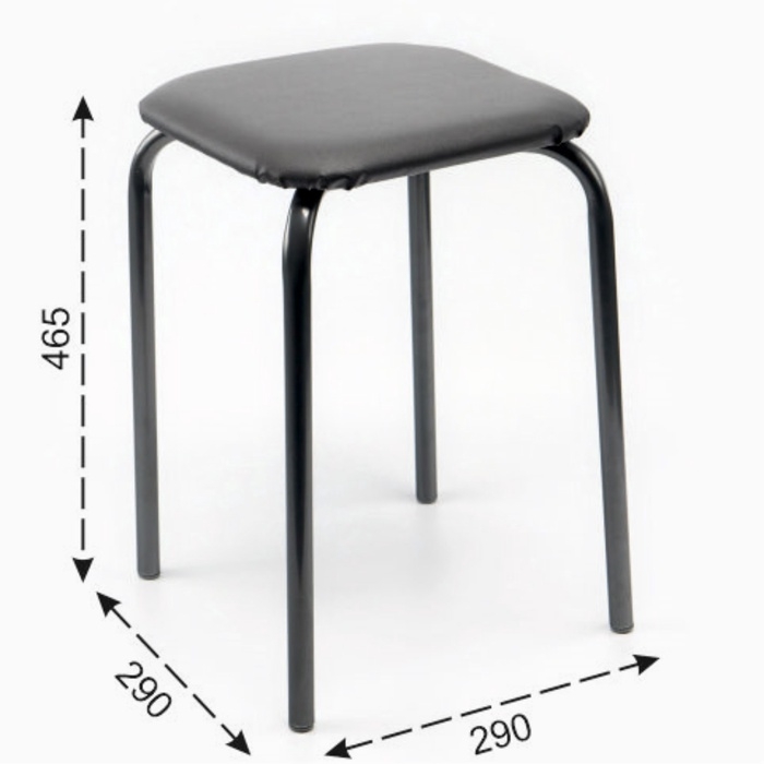 Табурет разборный на четырех опорах с мягким сиденьем из винилискожи. Материал сиденья устойчивый к истиранию и лёгкий в чистке.
