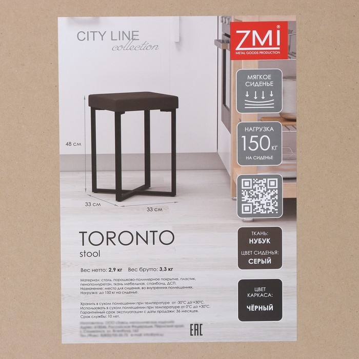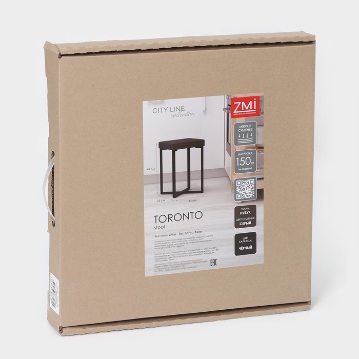 Табурет «Торонто», 33×33×48 см, цвет каркаса чёрный, цвет сиденья серый