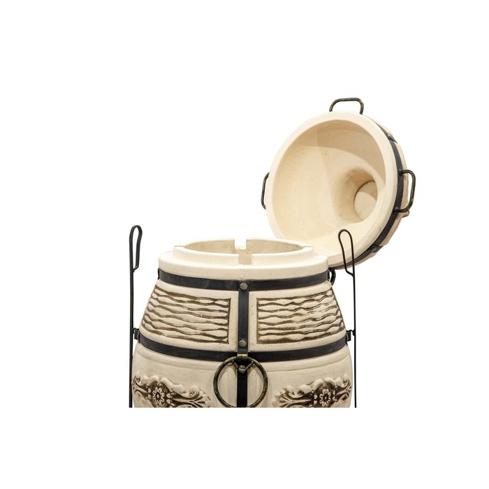 Тандыр "Барс" - это керамическая печь, которая в разогретом состоянии держит тепло в течение 2,5 - 3,5 часов. Средний объём тандыра и его толстые стенки дают возможность приготовить за один розжиг до 4-5 кг мяса. Обладает отличными характеристиками: высокой теплопроводностью, экологичностью, прочность.