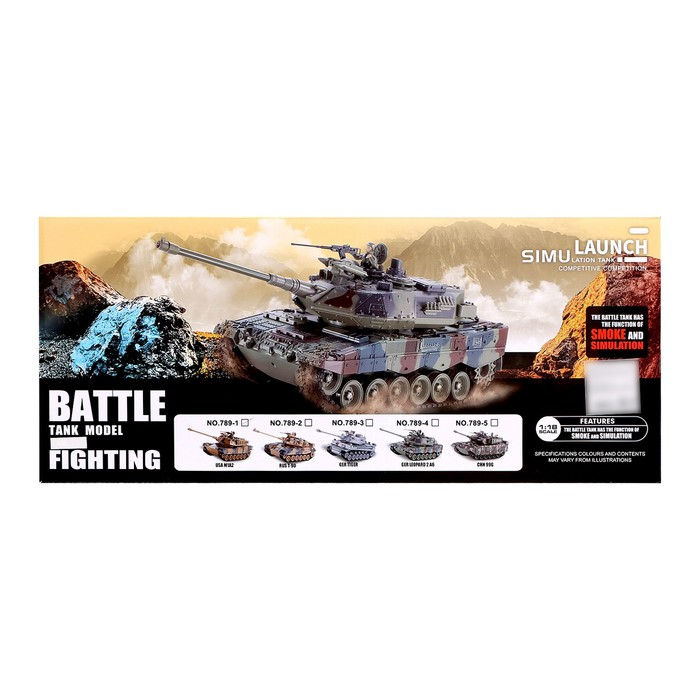 - Танк работает от аккумуляторной батареи 7,4 В 1 500 мА∙ч (в комплекте). В комплект также входит провод для зарядки.
