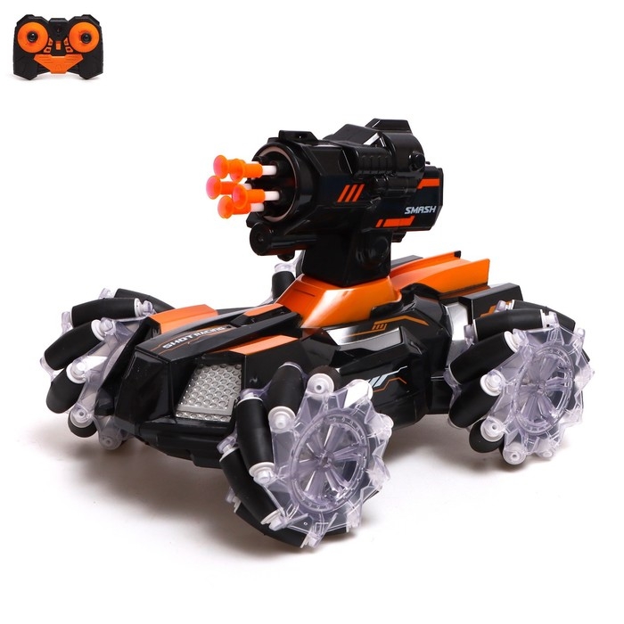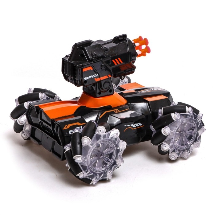 Танк радиоуправляемый Stunt, 4WD полный привод, стреляет ракетами, цвет чёрно-оранжевый