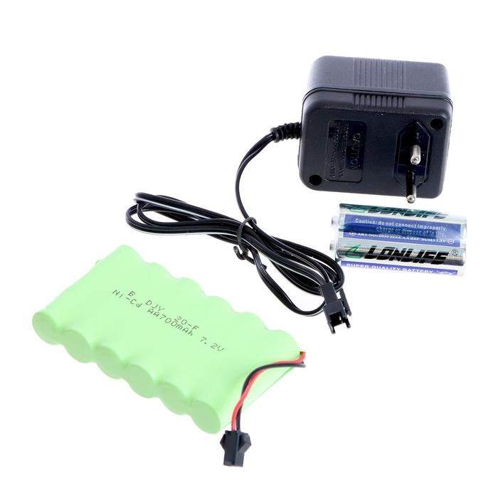 Радиоуправляемый боевой танк работает от аккумулятора и заряжается от сети 220 В.