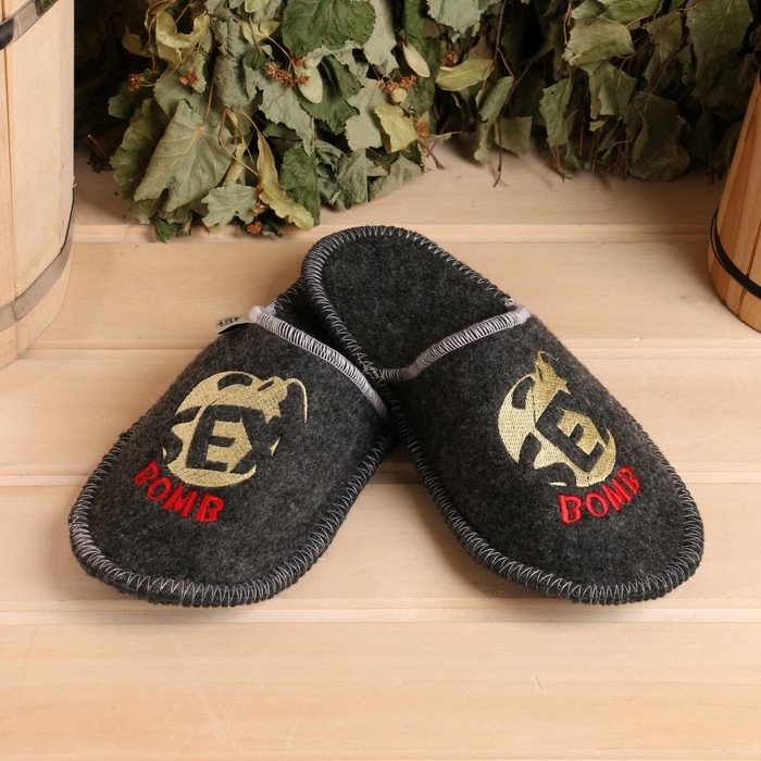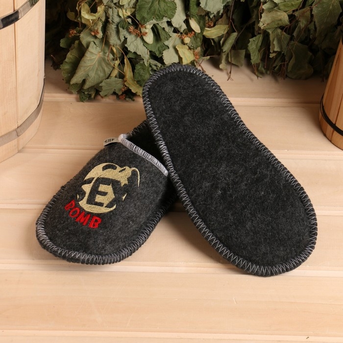 Тапочки для бани серые с вышивкой "SEX bomb" женские (26 см внутр. стелька)