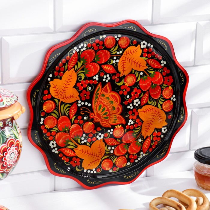 Тарелка «Блинная», хохлома D-30