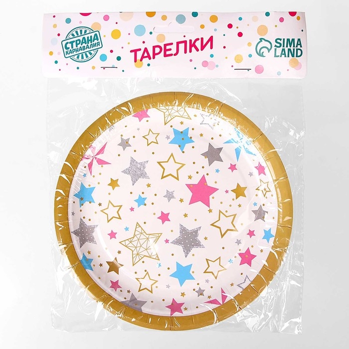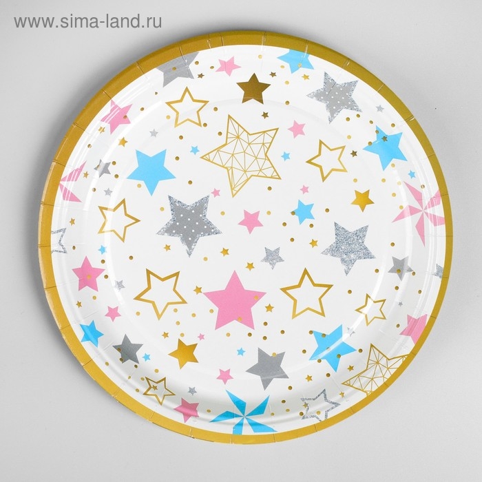 Тарелка бумажная «Цветные звёзды», 18 см, набор 10 шт.
