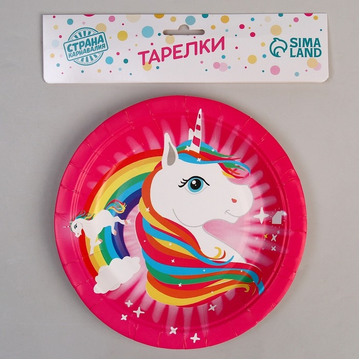 Тарелка бумажная «Единорог и радуга», набор 6 шт.