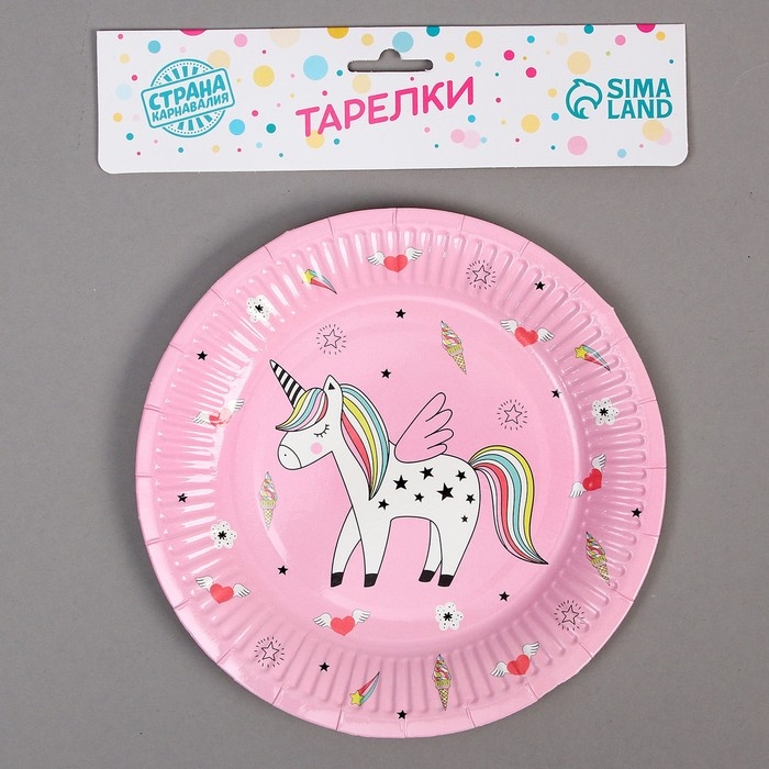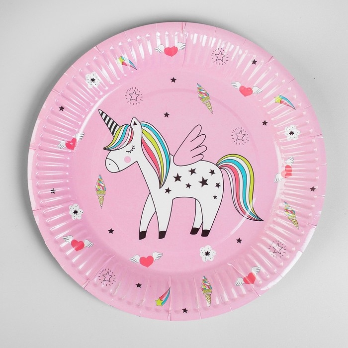 Тарелка бумажная «Единорог», набор 6 шт., цвет розовый